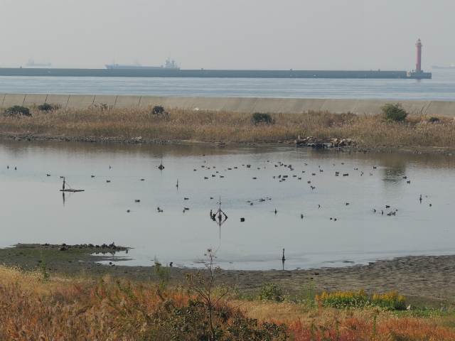 - 干潟エリア、特に西池に集中してカモが集まり、その大部分をオナガガモが占め、ホオジロガモ・ミコアイサの野鳥園では珍しい種も出た。