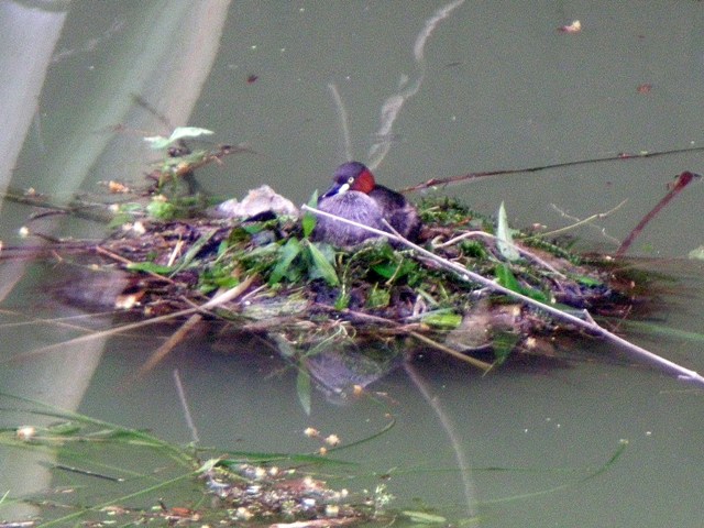 - 細谷池でカイツブリの営巣のようすを観察、親鳥が巣を離れたときに、卵が三つあることを確認。