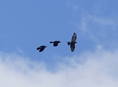 - 赤穂池の堰堤では、ノスリが南西方向から北東方向へ次々と飛翔、かなり上空を飛んだものも含めて18羽の渡りに遭遇。