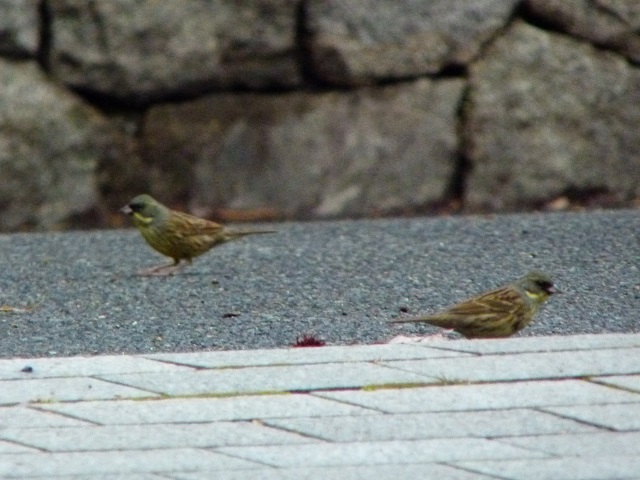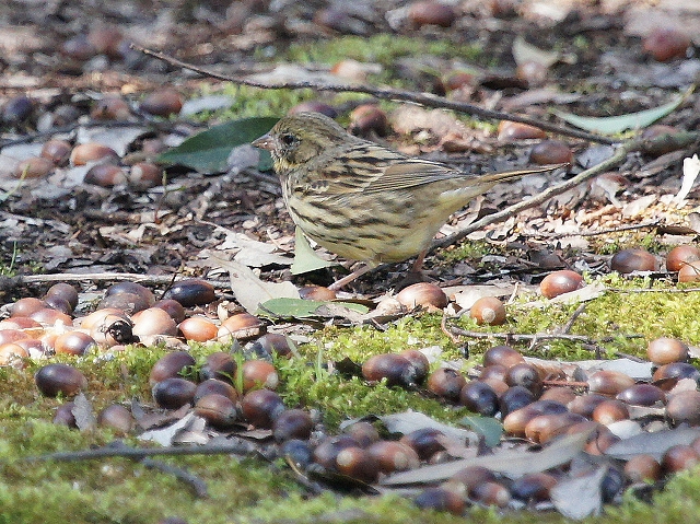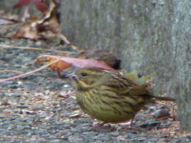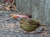- 河内の里の門の前では、目の前で採餌するアオジ雌をじっくりと観察。