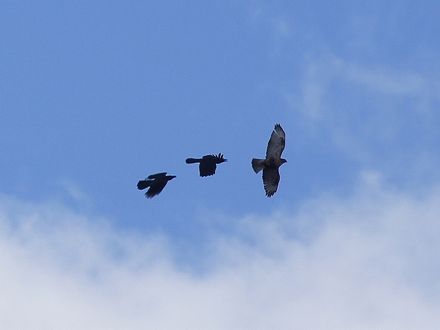 - 梅の里北側の広場からは遠くの木立にオオタカの姿、つつじが原では、カラスにモビングされるノスリの飛翔などを確認。
