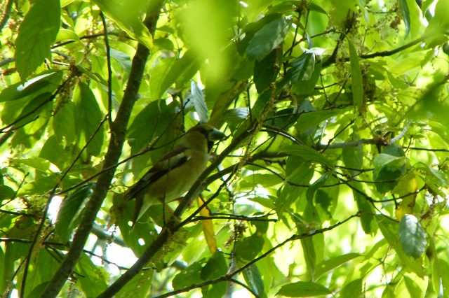 - 桜木の里では、遠くでアオバトの声。