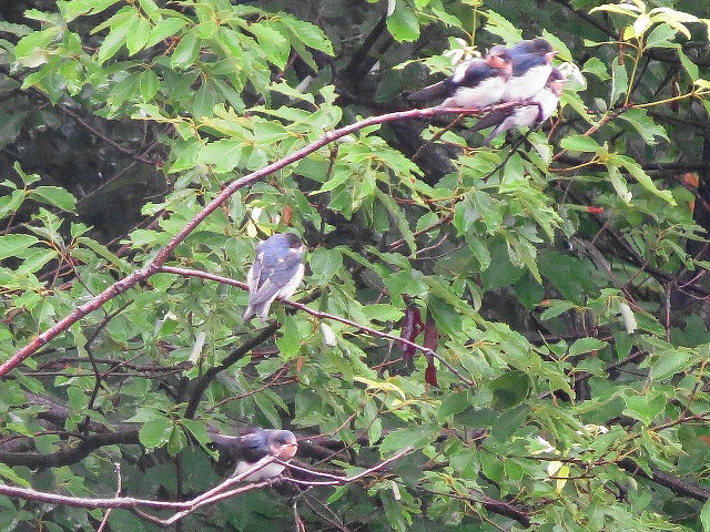- 朝からの雨でも、11名が集合。最初に管理事務所東の池でツバメの幼鳥6羽を確認、給餌のようすをじっくりと観察。