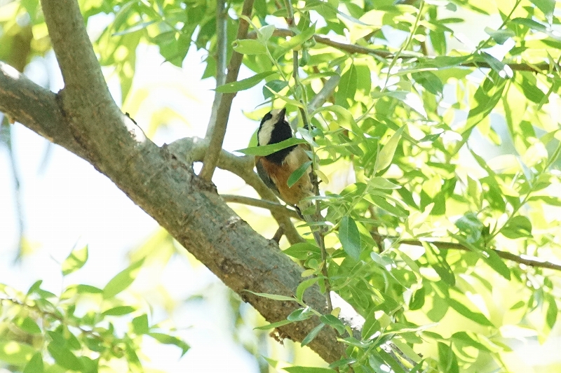 昼食後、河内の里の奥や一の谷の東屋のすぐ近くでスズメ・シジュウカラ・ヤマガラ・エナガなどの家族群をじっくりと観察。
