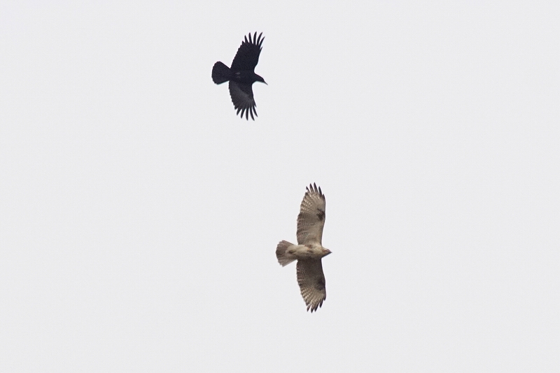 展望台下の中央園路では、遥か上空を大きさのまったく異なる2種類の猛禽類が飛翔する姿を確認。