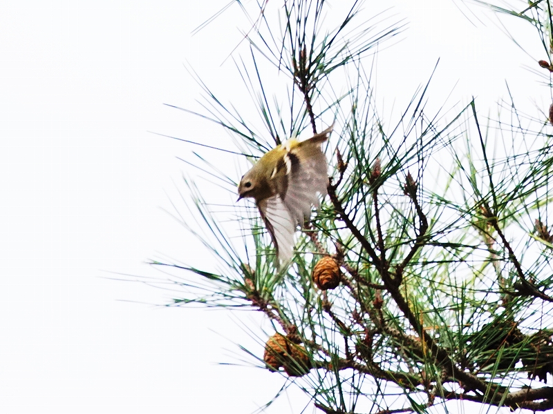 河内の里では、アカマツの梢に集まるメジロ・シジュウカラ・コゲラの群れにキクイタダキが交じっているところを確認。