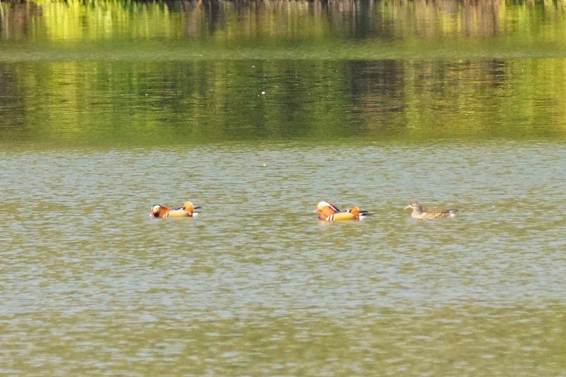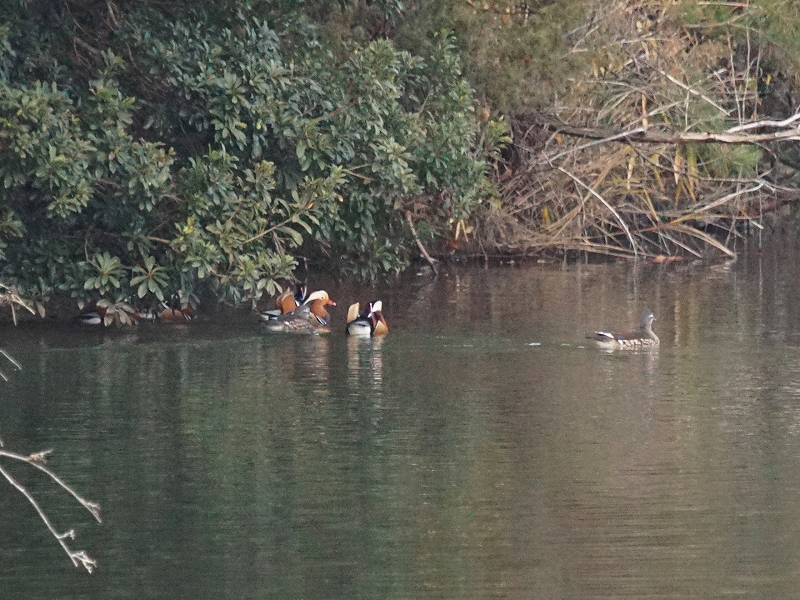 赤穂池では、マガモ・ホシハジロ・ヒドリガモ・オシドリを観察。
