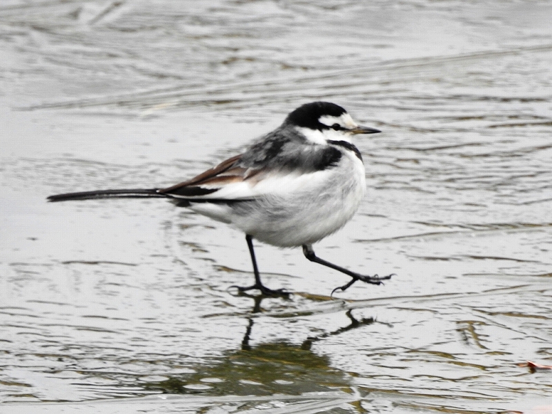 河内の家の西側にある池には氷がはっており、ハクセキレイが氷の上を歩いているところを観察。