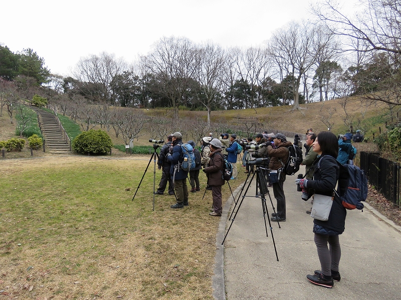 錦織公園定例探鳥会が初めての中学生1名、若い世代の夫婦2名を含む22名が参a? 。