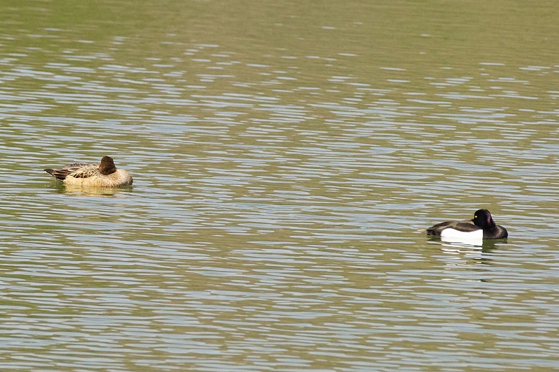 まず、細谷池でキンクロハジロ・マガモを観察。