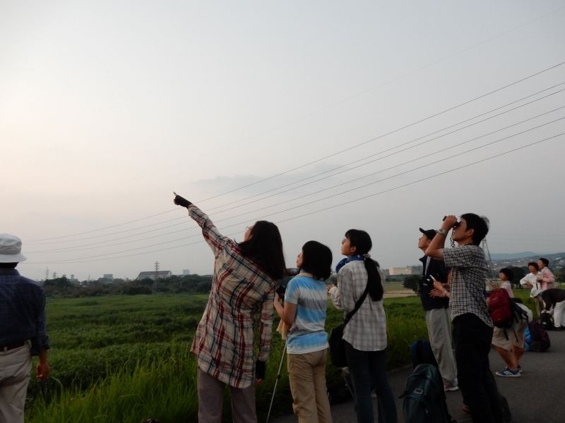 - 6:45くらいから、徐々に上空を飛び回るツバメの数が増えてきた。大きく旋回しながら、固まってヨシ原に飛び込み、また固まって上空に上がったり等、かなりの数が至近距離で乱舞する姿は圧巻だった。