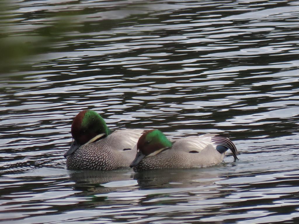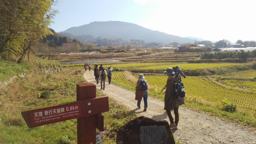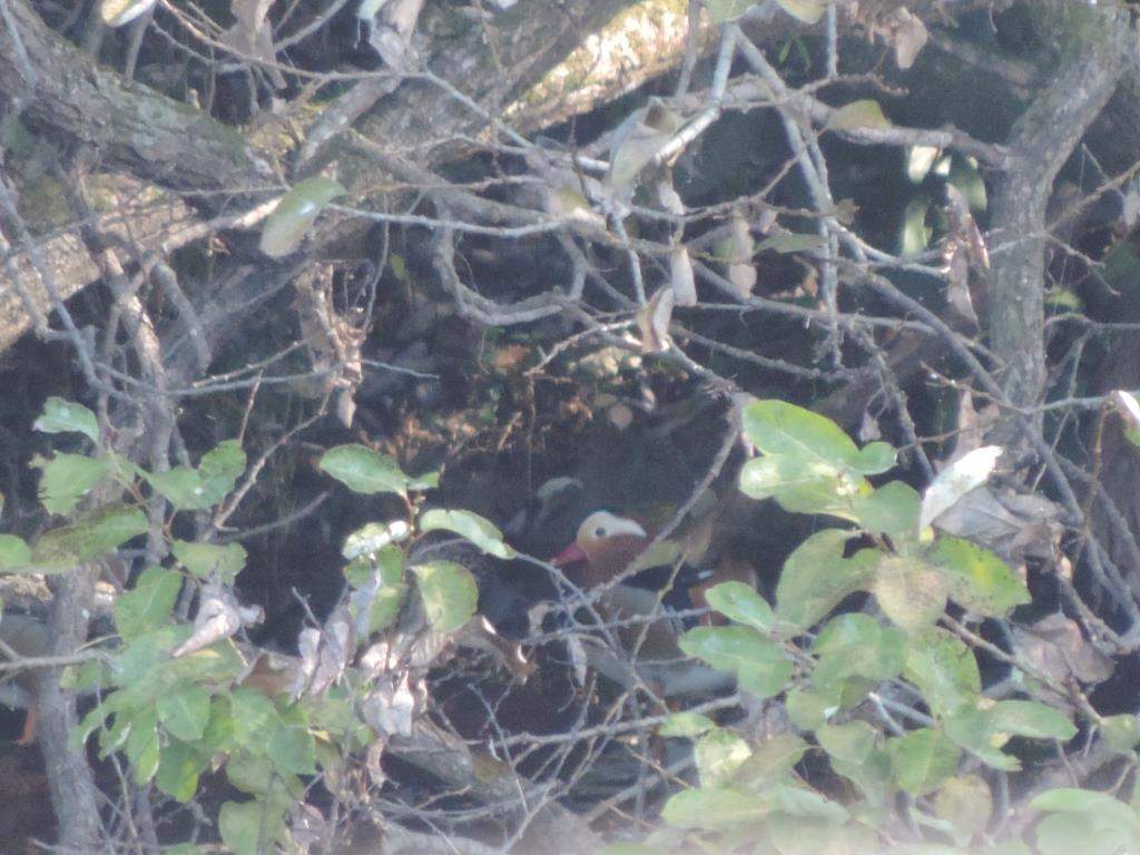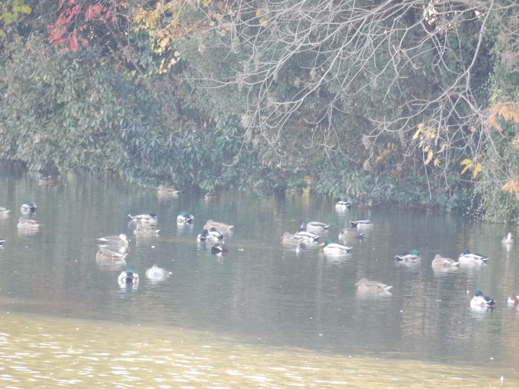 駅から山辺の道までにモズ、イソヒヨドリ、カワセミが見られました。古墳の池ではたくさんのカモ類、枝陰にオシドリがいました。