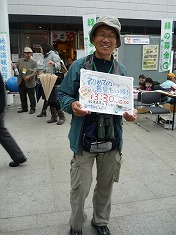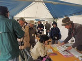 - 左から:ブースでゲーム、そして探鳥会にも参加して下さった方(橋本支部長:写)