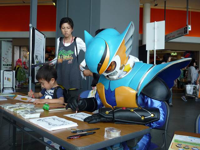 - 野鳥に関心をしめしてくださった方々には「バードウォッチング手帖」を差し上げ、支部の探鳥会のアピール等も少しできました。途中で、ゆるきゃらの「たいしくん」や「アマノンガー(カワセミがモデル)」もブースでクイズに挑戦してくれたりと、大盛り上がりで、いっしょに楽しいひと時を過ごすことができました。(報告:駒田峰子さん)