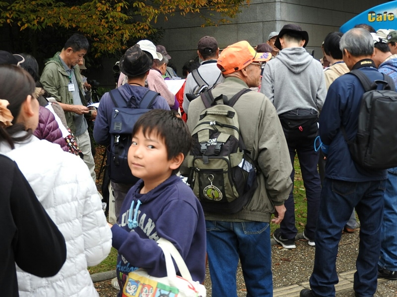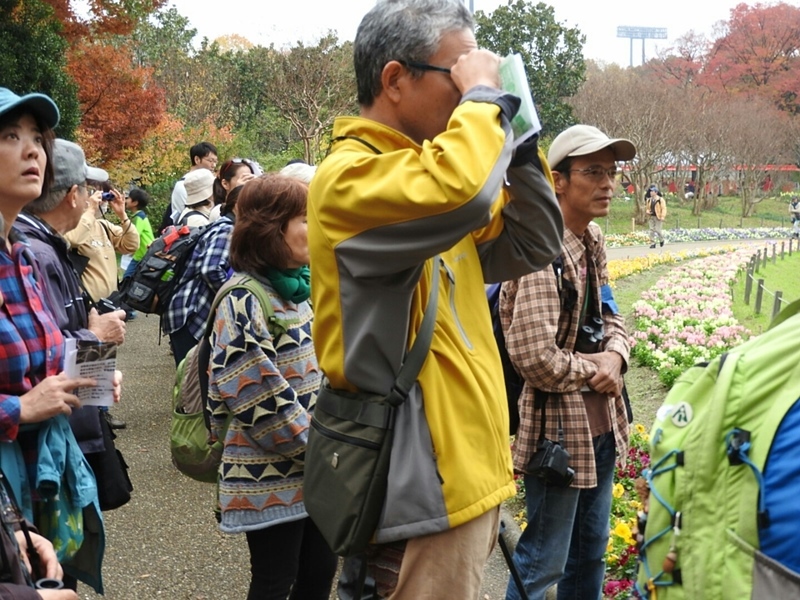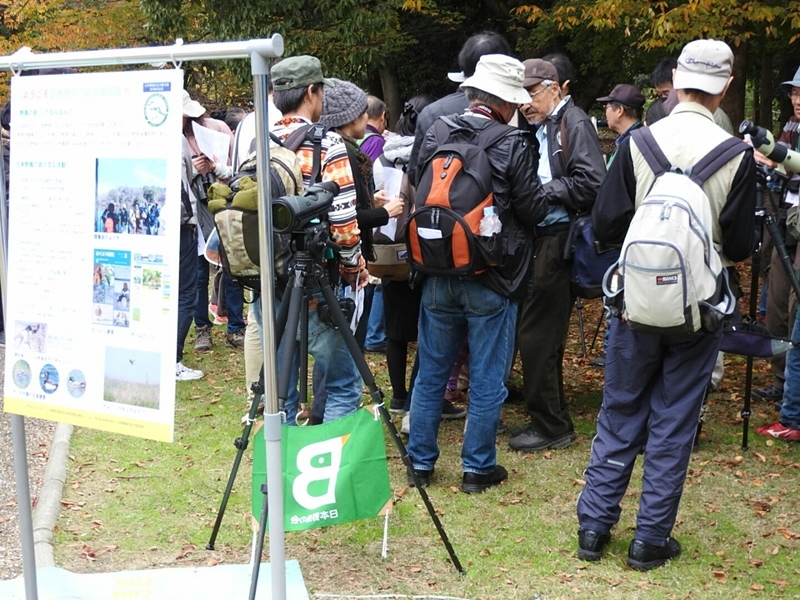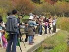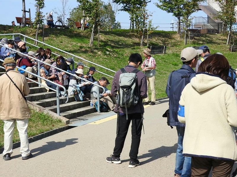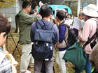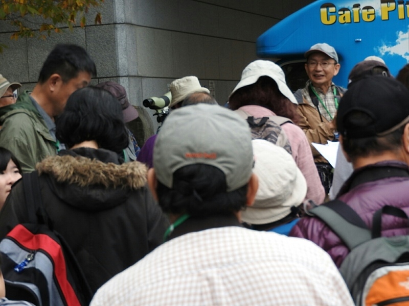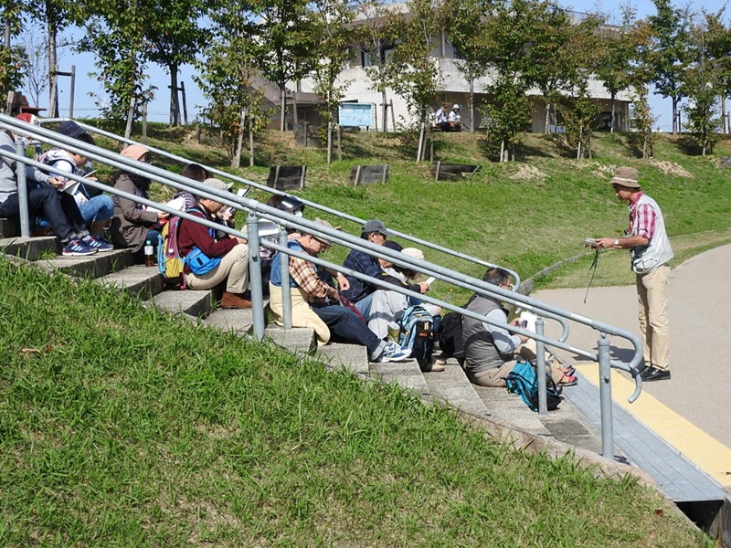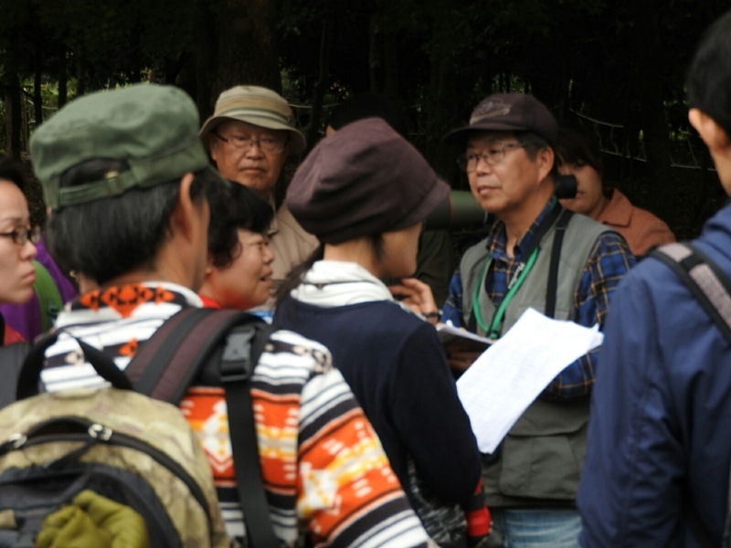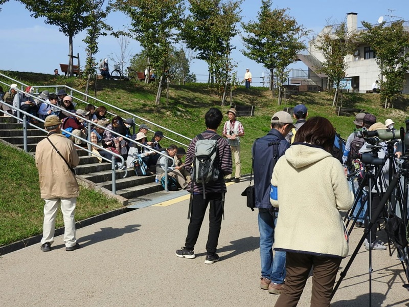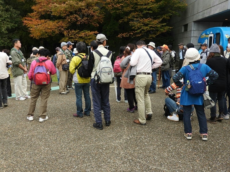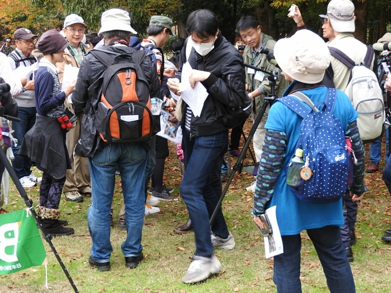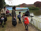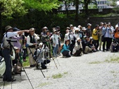 - 開始前の一雨も止み67名の参加者。午前と同じグループ編成でスタート。午前午後とも初めてのヨシガモ・カンムリカイツブリを全員がしっかりと見ることができた。最後にカワセミも現れ27種を確認した。熱心に鳥合わせの説明を聞く参加者の眼が印象的だった。