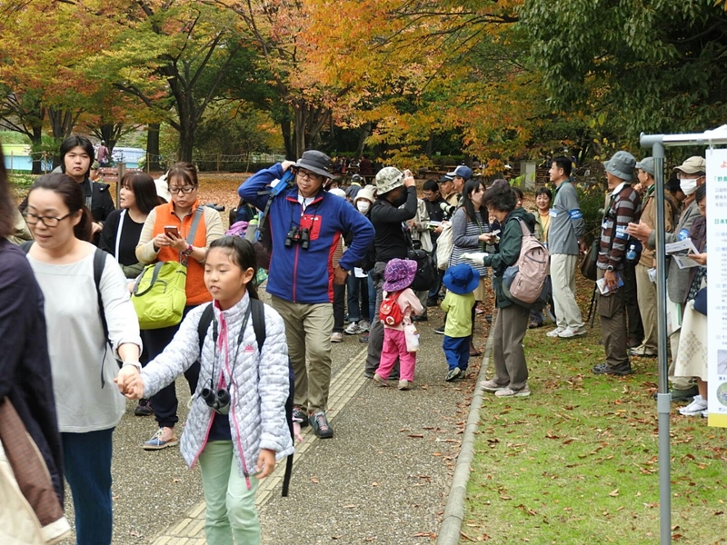 - デイパックに沢山の鳥のバッチを付けておられた杉本さんは「もっと早くこの趣味を始めたら良かった。」とおっしゃられていましたが、今回は随分年代の小さい子供達のいるご家族連れも参加しておられ、感受性豊かな子供達が野鳥を通じて自然に親しみながら育ってほしいと思いました。
