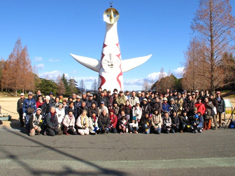 - 青空広がる万博公園に25名の方が集合。今回は定例探鳥会と重なり、一緒に記念撮影。