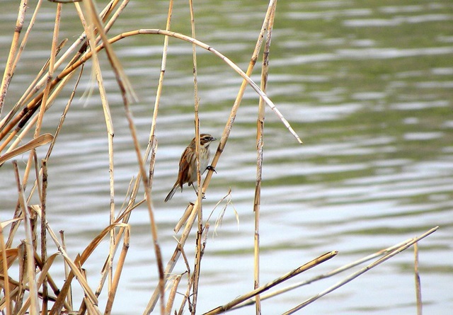 - 狭山池では、1家族5名が合流し一段と賑やかになり、オギに群れるホオジロ・スズメが何を採餌しているのか観察。