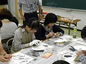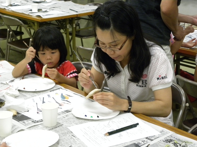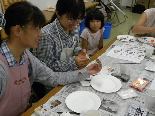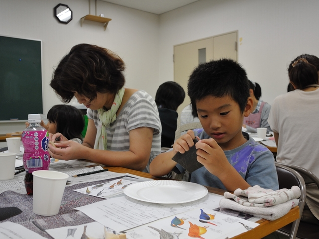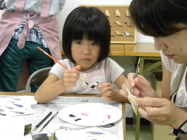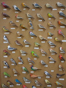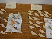 - 午後からは、天王寺図書館の呼び掛けで25名がオオルリ・キビタキ・コマドリ・クロツグミ・ノゴマから一つ、それぞれあらかじめ鳥の形に削ったものに色を付け