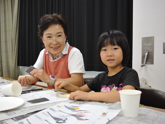 - 大阪市立天王寺図書館の2階集会室をお借りして、夏休みの1日、「小鳥のブローチをつくろう!」のイベントを開催しました。