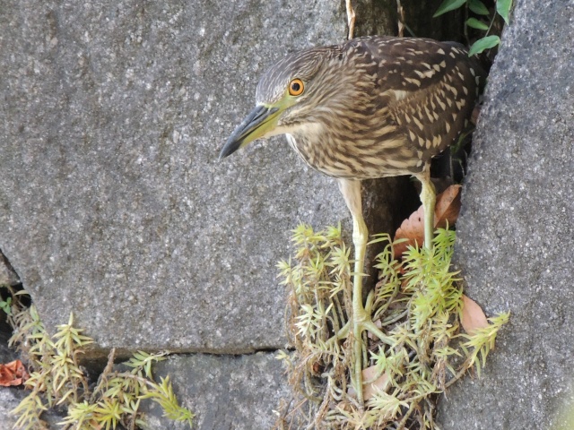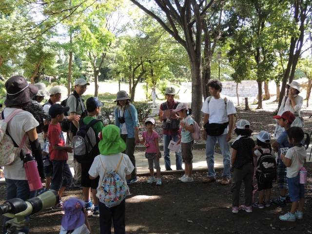 - 北外堀では、西側の森で枯れ木をつつくコゲラのようすを間近で見たり、飛んできて石垣の隙間に止まったササゴイの若鳥を見たり、みなさん大満足の成果。
