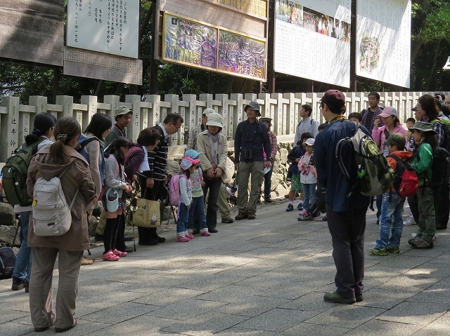 - 快晴のGW前半最終日。バーディー参加者記録の67名が枚岡神社の参道に集まった。