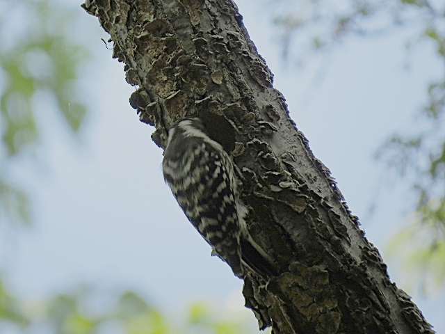 - 新緑の下、キビタキやオオルリ、エゾムシクイやセンダイムシクイなどの囀りを聞きながら枚岡展望台に到着。