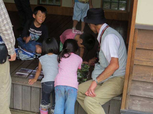- また、コナラの樹液に集まるオオムラサキやゴマダラチョウ、キイロスズメバチをじっくりと観察したほか、ナナフシやオオカマキリ、カナヘビやウシガエルなども観察しました。