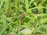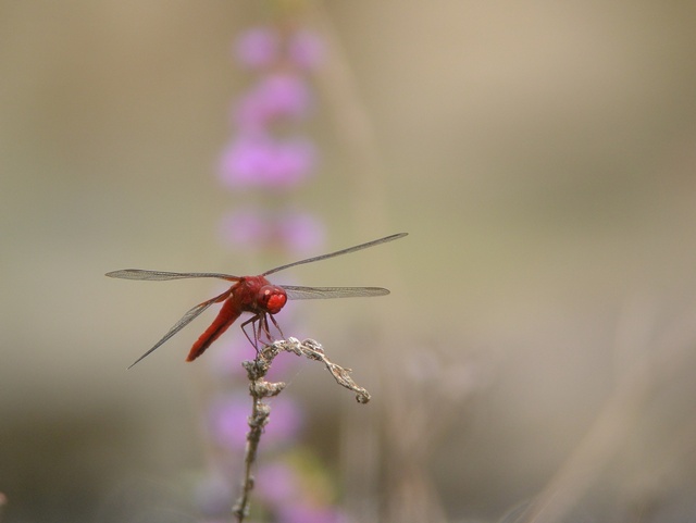 - 次にショウジョウトンボをじっくり見せてもらった。全体がすごく赤いトンボだった。