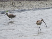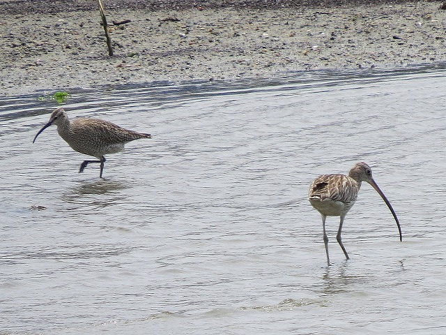 - 川に行ったら、いっぱいチュウシャクシギがいる中に大きなダイシャクシギがいました。大きいのでよく見えました。