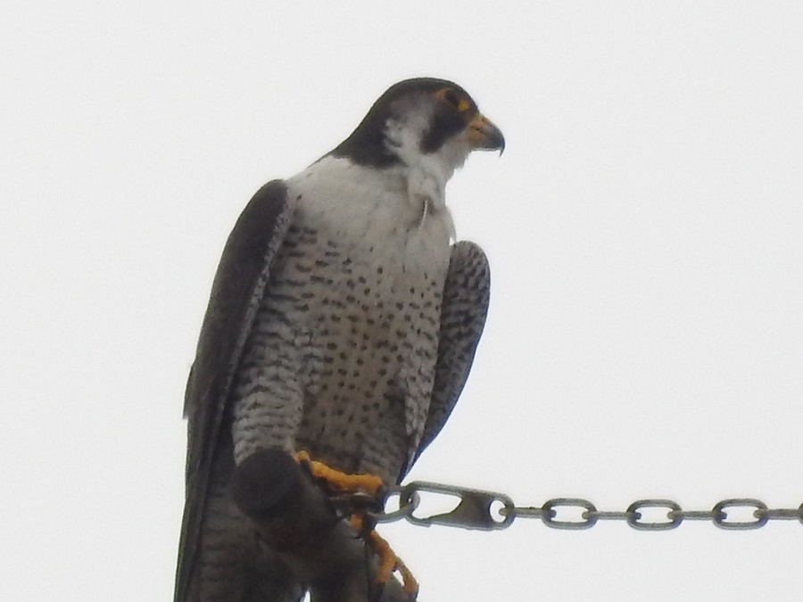 - 観察して観ると、そらちゃんのお腹の線が横でした。(そらちゃんは、ハヤブサの名前です。もう一羽は、きらら君です。)