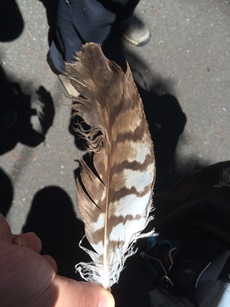 - また、解散後、大津川に出かけた一行は、ハヤブサ幼鳥が間近の鉄塔に飛んできたところを観察したり、 そらちゃんからもらったエサを食べているところを見たりすることができました。