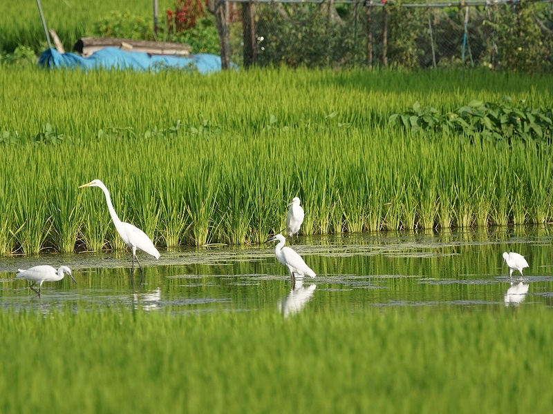 ツバメ以外でも、セッカやヒバリ、セキレイのなかまやサギのなかま、ケリなどを観察することができました。 - 現地配布資料