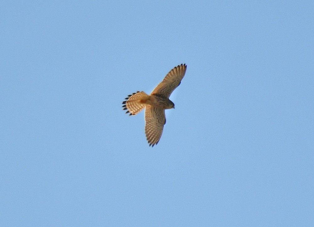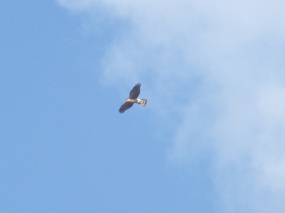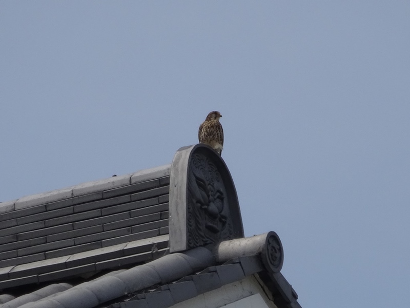 タカみたいなかっこいい鳥が高い空を飛んでいると思ったら、チョウゲンボウだと教えてもらいました。帰ってから本で見るとかわいい顔をしていました。