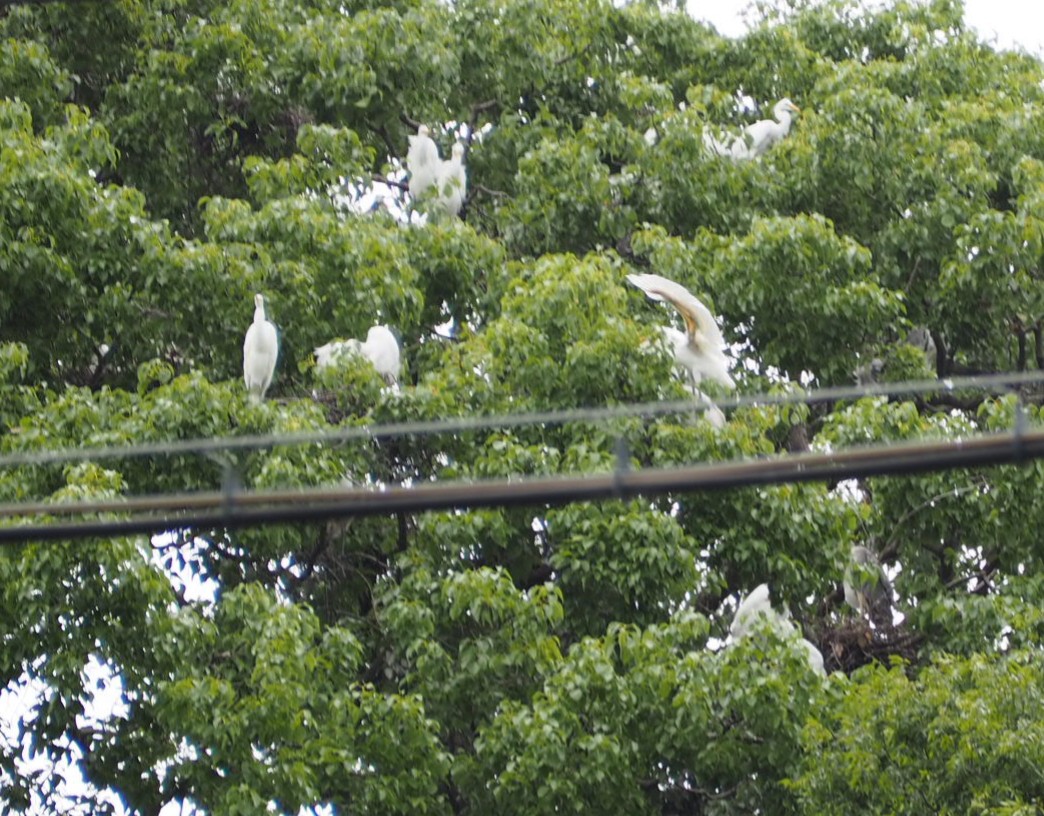 その後に、サギがいっぱいいる「さぎのもり」にいきました。その森の中では、2種類のサギを見ることができました。1種類目はダイサギです。ダイサギの若鳥は、くちばしが黄色で、羽の内側の茶色っぽいのが特徴だとリーダーが教えてくれました。2種類目は、アオサギでした。でも、残念ながら、ダイサギ・アオサギの群れの中にはコサギはいませんでした。コサギの特徴は、くちばしが黒色ということです。あいにくの雨模様でしたが24種類のたくさんの鳥を見ることができました。また、ぜひぜひ参加したいです!!