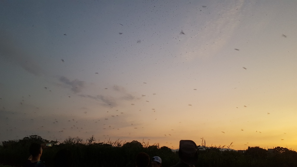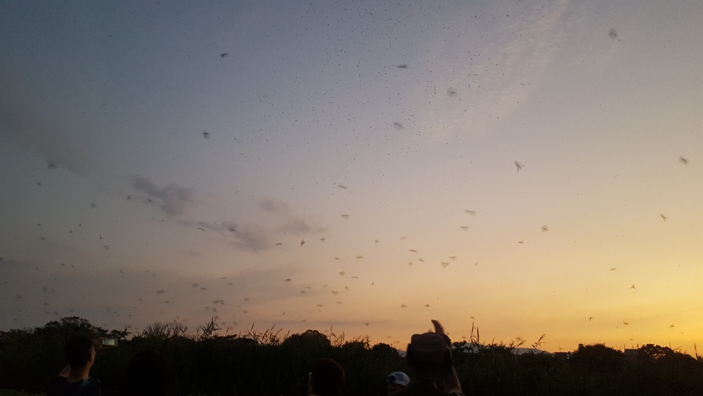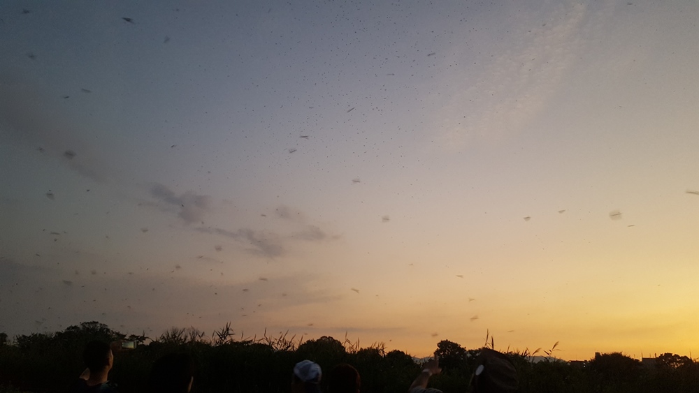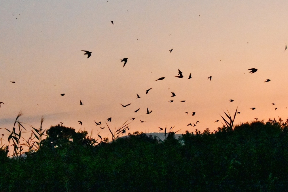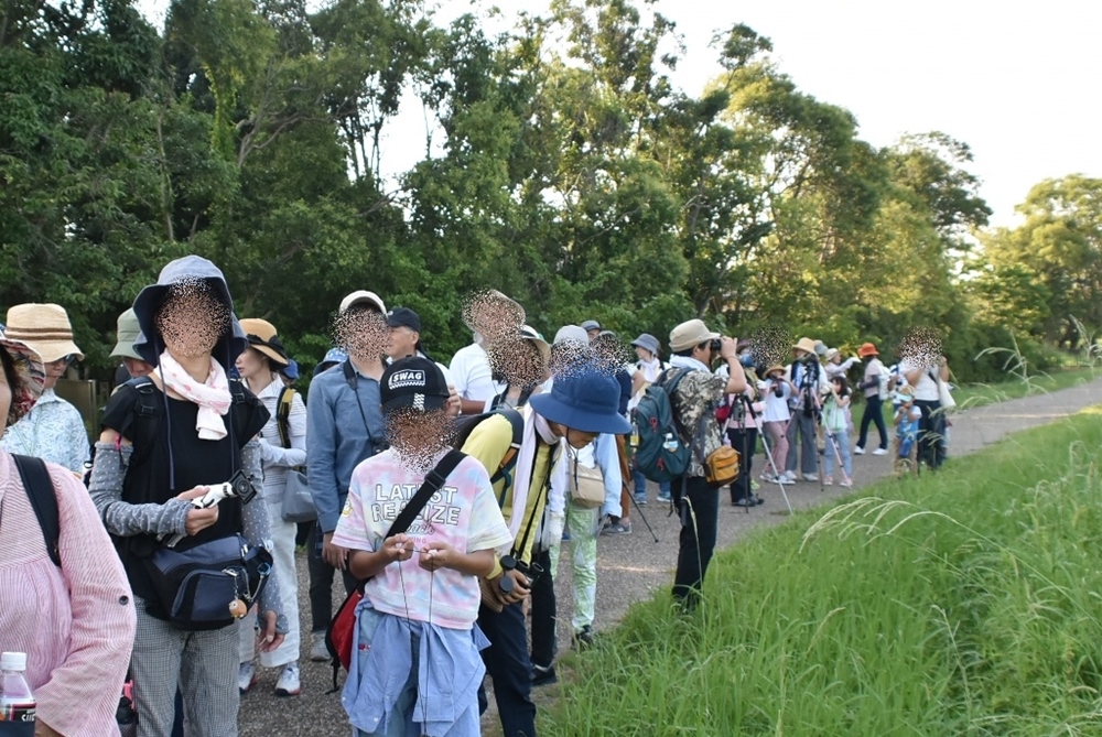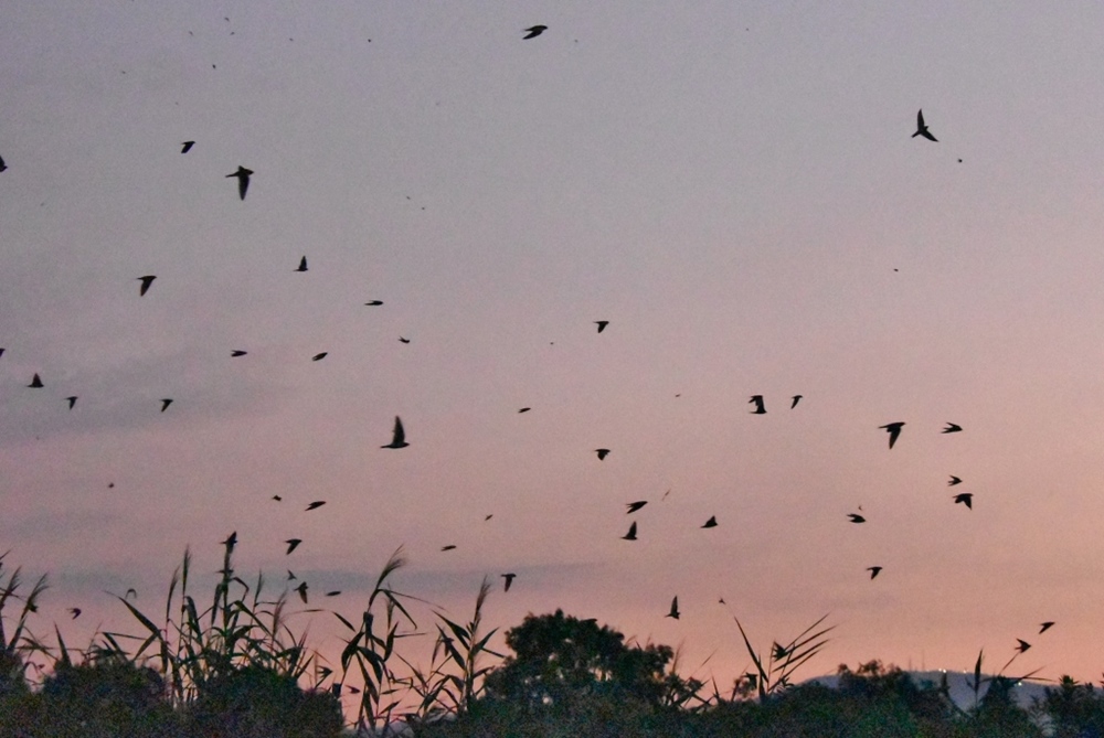 2日目は、早朝にツバメのねぐら入りを見に行きました。残念ながら、確認できた数は少なかったですがリーダーがツバメの鳴き声を教えて下さって数羽飛び立つところを見ることができました。