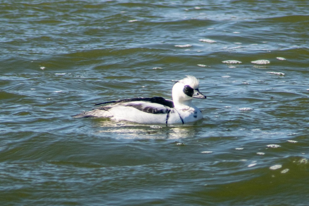 ミコアイサをちかくで見れました。ミコアイサはくろと白でした。