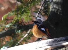 - メジロ、シジュウカラ、ヤマガラ、コゲラの混群が時々飛ぶ。キョッ、キョッと鳴く声がするので、探すと枯れ木にアカゲラを発見。