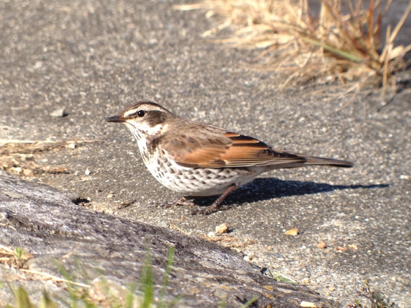 - 電線に止まるビンズイ、堀にいるマガモ、田畑に多いモズをゆっくり観察しながら進みました。途中、カシラダカの群れを観察し上尾筒の鱗模様を楽しみました。