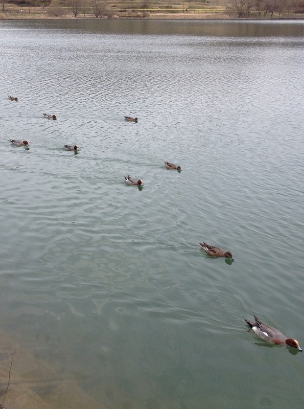 - 50羽以上の大群が残っていたのはヒドリガモのみで、餌やりと勘違いされた私達の下に何度も飛来して水面を一斉にはむ姿に申し訳ない気分になった。