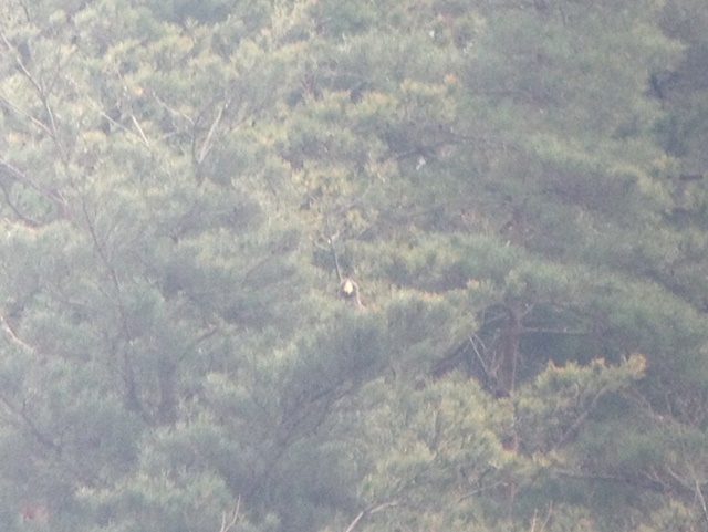 - 大浦湾の左岸の入江になっているところの向かい側の山腹にオオワシが止まっていましたが、緑に囲まれ黄色い嘴と頭だけしか見れないのが残念でした。期待のオジロワシはオオワシがいると餌さを奪われるので現れないとか。