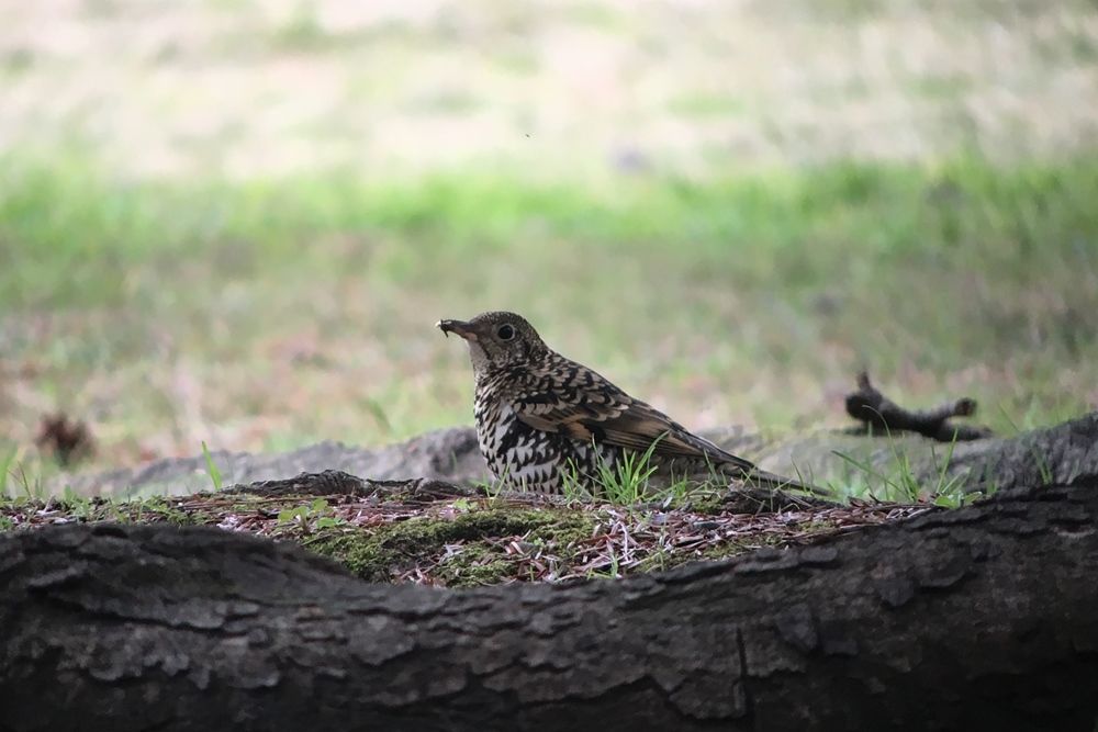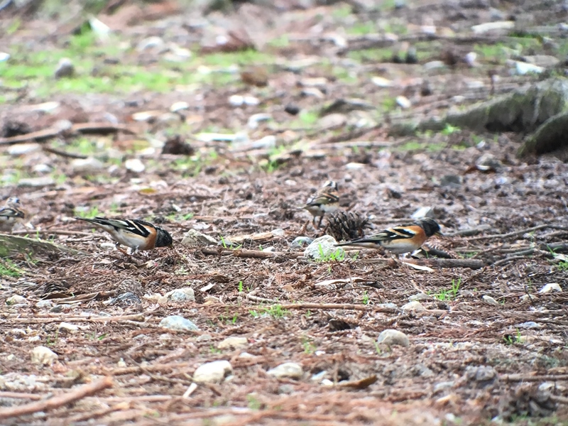 アトリの群れが各地でよく観察された。トラツグミにみんなが夢中になっている最中、参加者が木の中に隠れていたアオバトを見つけてくれたのでさらに大賑わい。