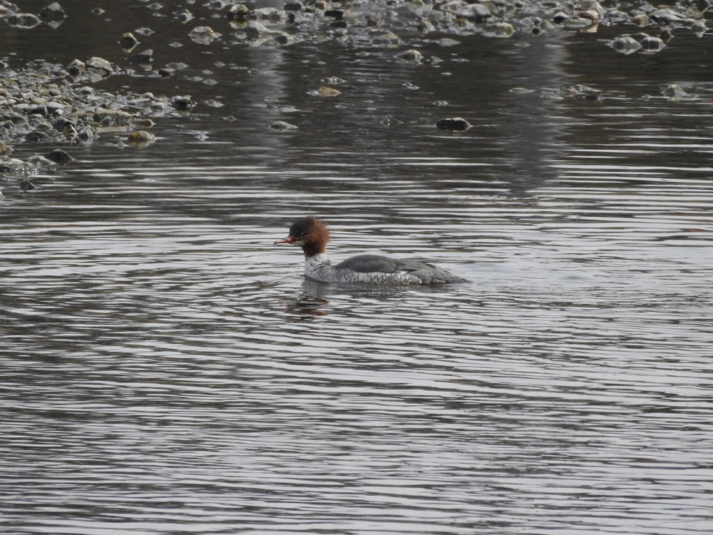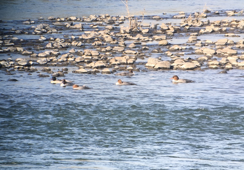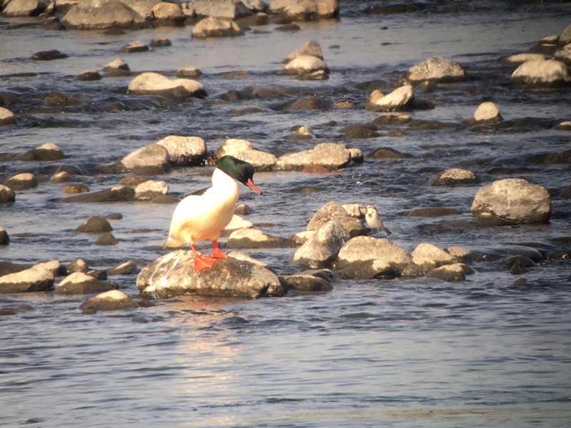 昼食後は、鴨川まで歩き、カワアイサ、マガモ、ヒドリガモなどを観察し、雨が降るまでに終了できました。