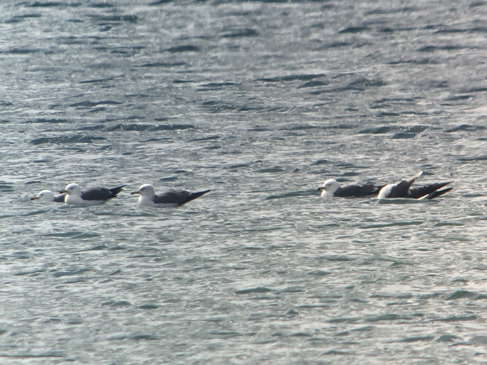 湖ではカモメとウミネコが羽を休めていました。カンムリカイツブリやハジロカイツブリ、ウミアイサ、カワアイサも確認できましたが、頻繁に潜水していたので皆さん探すのに悪戦苦闘していました。