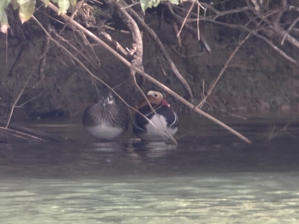 例年に比べカモの種類が少ない中で、ハシビロガモが多いのが目立った。オシドリがペアで観察出来たのがよかった。