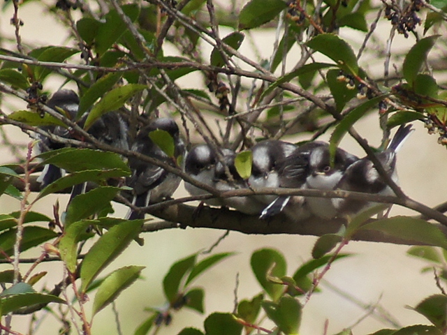- 中尾山古墳では、夏鳥のキビタキも… その葉蔭に給餌を待つエナガの幼鳥が9羽(ダンゴ9兄弟状態) 本日の人気1。
