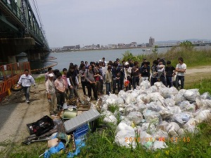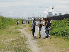 - 観察後のゴミ拾いは参加者が多く、予定時間の半ばを過ぎた時点で、河川敷はすっかりキレイになっていた。