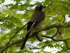 - ケーブルを降り、 集合してすぐ、バスに乗る前にコガラ・ヒガラ・カケス・コサメビタキに色鮮やかなソウシチョウが出迎えてくれました。