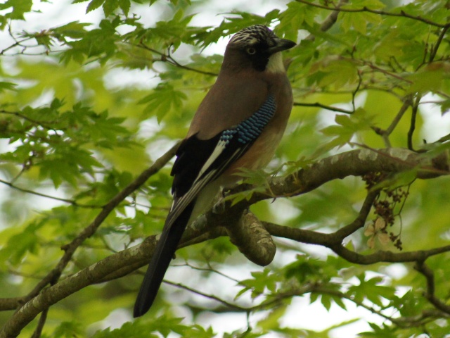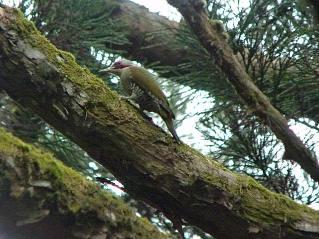 - キセキレイ・キビタキ・カラ類のさえずりを聞き、姿を見ていたら、とびきり愛想のよいアオゲラが、参加者全員に真っ赤な帽子を見せてくれました。