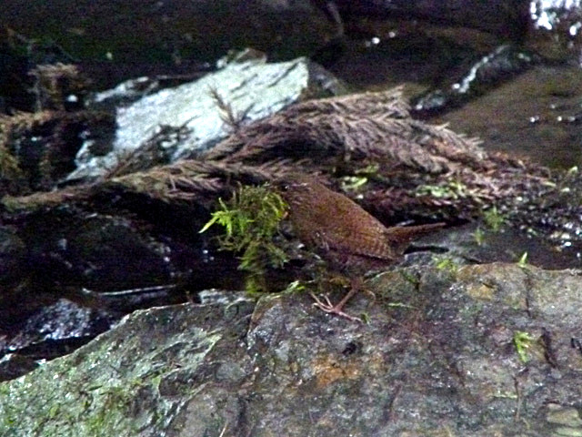 - 幸先のよいスタートに期待で胸が膨らみました。奥の院に入り、せせらぎに架かる小さな橋の下で、ミソサザイがくちばし一杯に苔をくわえて、巣作りの真っ最中!